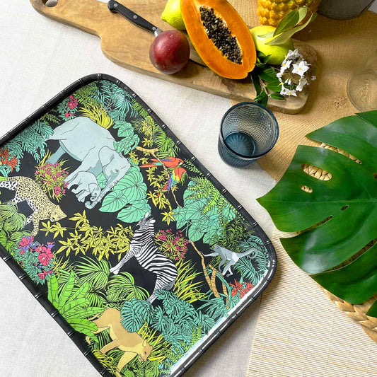 Rectangular tray in black melamine- 45 x 32 cmJUNGLE- Presentation platter with a pretty jungle- Extremely strong pure melamine dish- 45 cm x 32 cm- 30%Rectangular tray in black melamine- 45 x 32 cmJUNGLE- Presentation platter with a pretty jungle- Extremely strong pure melamine dish- 45 cm x 32 cmRegular price €20,93 EURRegular priceUnit price / per€29,90 EURSale price €20,93 EUR- 30% -