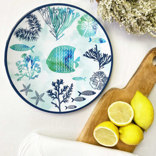 Large dinner plate in melamine with sea design - Ø 26,5 cmCARIBBEAN- Large melamine dinner plate with sea decor- Perfect for a seaside theme table- 26.5 cm in diameterLarge dinner plate in melamine with sea design - Ø 26,5 cmCARIBBEAN- Large melamine dinner plate with sea decor- Perfect for a seaside theme table- 26.5 cm in diameterRegular price €9,50 EURRegular priceUnit price / perSale price €9,50 EUR -