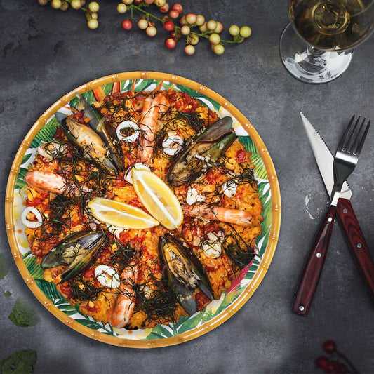 Round melamine serving dish with exotic flowers - Ø 35,5 cmEXOTIC FLOWERS- Large presentation plate 100% melamine- Ideal for your aperitifs or cakes- 35.5 cm diameterRound melamine serving dish with exotic flowers - Ø 35,5 cmEXOTIC FLOWERS- Large presentation plate 100% melamine- Ideal for your aperitifs or cakes- 35.5 cm diameterRegular price €20,90 EURRegular priceUnit price / perSale price €20,90 EUR -