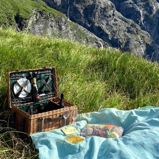 - The Saint-Honoré picnic basket: With its lid that transforms into a table, this basket will surprise you! It's functional and can be adapted to any situation, from the beach to the mountains or even the countryside. For two, four or six people, this model is available in blue and green.