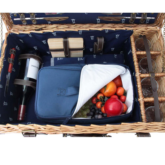 Prestige Picnic Hamper Champs-Elysées blue - 4 personCHAMPS-ELYSEES- Honey-coloured wicker combined with real leather- Elegant basket with monogrammed blue fabric- Crockery and cutlery for 4Prestige Picnic Hamper Champs-Elysées blue - 4 personCHAMPS-ELYSEES- Honey-coloured wicker combined with real leather- Elegant basket with monogrammed blue fabric- Crockery and cutlery for 4Regular price €284,90 EURRegular priceUnit price / perSale price €284,90 EUR -