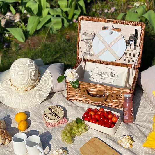 Les Jardins de la Comtesse have put together a selection of products you're sure to love: cashmere and wool scarves and plaids, melamine crockery, baskets and other picnic accessories...