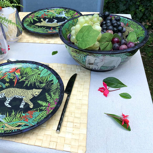 This range of melamine salad bowls and cutlery will bring out the best in your dishes and salads. Both colourful and original, their designs will brighten up your indoor or outdoor tables. Placed in the centre of your table, these salad bowls and their matching cutlery will add a cheerful touch to your meals! To satisfy everyone's tastes, this range of tableware is available in different themes, each as elegant as the next: Rio Toucans, Jungle, Exotic Flowers, Lisbon...