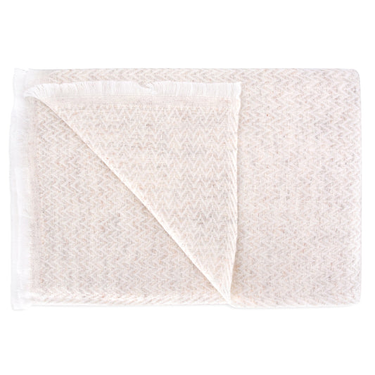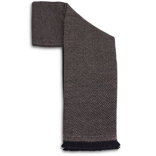 Made with special care for our customers, the cashmere and wool scarf with its fringed finish features three types of pattern (speckled, diamond and small chevron).