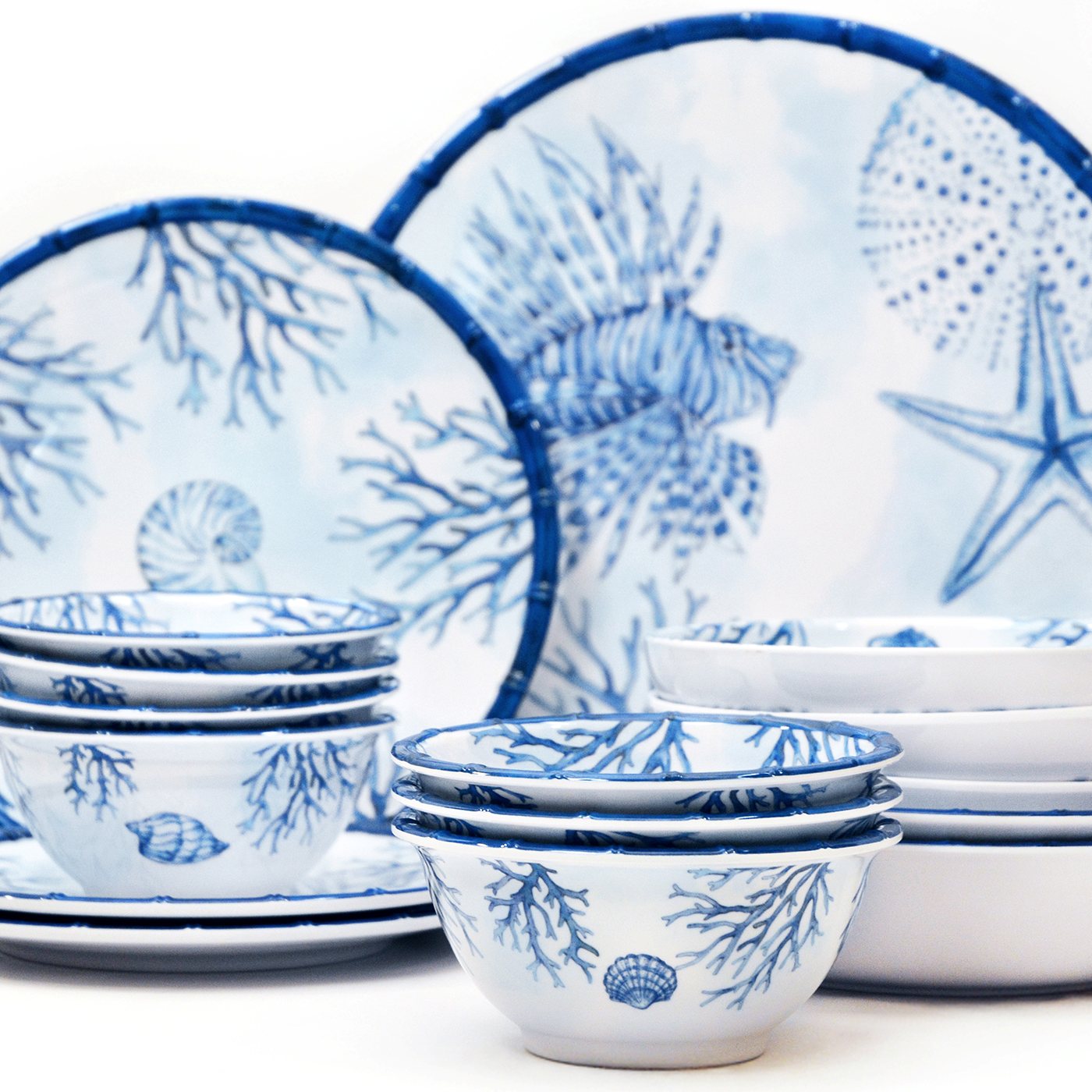 This elegant dish with its unique blue-tone design is illustrated with magnificent fish and marine plants. This dish is the perfect complement to your Piana service: small and large plates, soup plates, large salad bowls, salad trays, cake pans, large platters. Made from melamine, this dish is shock-resistant and virtually unbreakable.